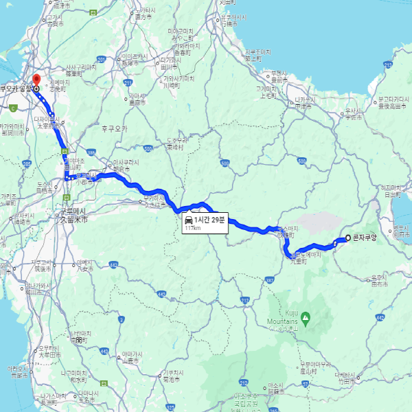 공항 기준후쿠오카 공항에서 자동차로 약 1시간 30소요 |