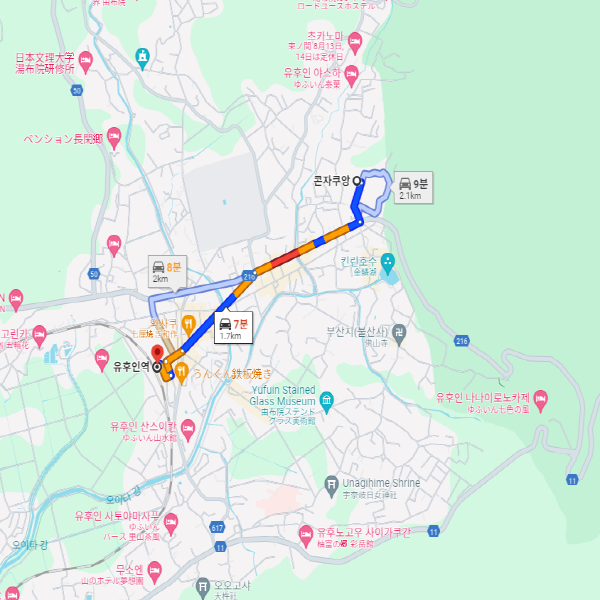 숙박지 주변유후인역에서 자동차로 약 6~10분 소요 |
