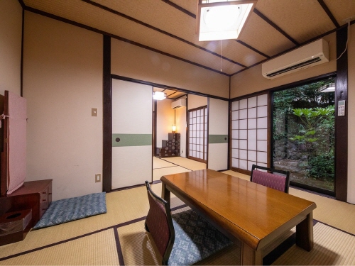 자연과 정적에 둘러싸인 품위있는 료칸 유후인 콘자쿠앙, 전 객실은 9객실로서 본관에는 5객실, 별채는 총 4객실로 이루어져 있다. 별채의 경우 전 객실이 노천온천이 포함되어있는 력셔리 형식으로 꾸며져 있으며, 한적한 시골마을에서 일본의 온천과 가이세키 요리를 즐기고 싶은 고객들에게 인기가 많은 료칸이기도 하다. 가이세키 요리는 분고규(큐슈의 최고급 소고기)를 사용한 메인요리로서 정통 가이세키 요리를 즐기고 싶어하는 손님들에게 호평이다. 특히 요리에 있어서는 오카미상이 직접 식재료를 선정하여 지역에서만 맛볼 수 있는 고급 야채 및 고기를 중심으로 한 무기농 식재료를 사용함으로서 안심하고 고객들이 음식을 즐길 수 있는 시스템을 갖추고 있다. |