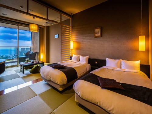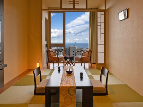 료테이 마츠바야는 벳부에서도 약간 높은 언덕에 위치해 있어 조용하고 고요한 분위기가 느껴진다. 료칸 내부가 현대적이며 세련된 구성으로 되어있어 낯설지 않고 익숙한 느낌을 느낄 수 있어 내 집과 같은 편안함을 느낄 수 있다. 객실은 신관인 츠키노소와 본관인 오카노소로 나뉘는데 츠키노소의 객실은 전망을 즐길 수 있는 객실로 벳부 자연소재를 살린 인테리어가 돋보이며, 츠키노소 8실 중 객실에 개인전용 노천온천 또는 전망온천이 포함된 객실이 있다. 오카노소의 객실은 일본특유의 정서가 느껴지며 차분한 느낌이 드는 객실이다. 다양한 객실 타입을 갖추고 있어 고객이 취향과 목적에 따라 선택할 수 있는 폭이 넓다. 마츠바야의 온천 시설 또한 일본 화(和)의 정서와 모던한 느낌이 보기 좋게 어우러져 있다는 특징이 있다. 전체적으로 깔끔하고 아늑한 느낌의 료칸인데다가 벳부역에서 차로 7분 거리에 있어 접근성도 편리하여 많은 분에게 추천하고 있는 료칸이다. |