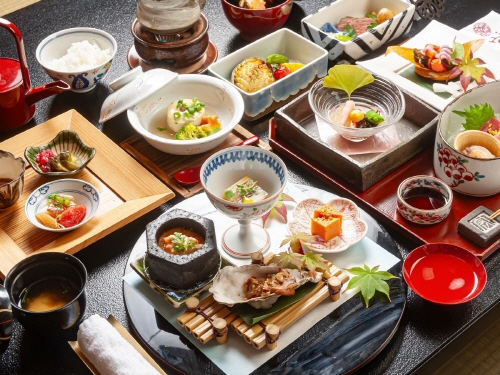 | 석식 | 있음 / 가이세키 정식 / 운영시간 18:00 ~ 19:00 / 특이사항 : 18시,18시30분,19시 3부제 / 객실 내 식사 또는 식사처 식사 (4인 이상 식사처 식사) |