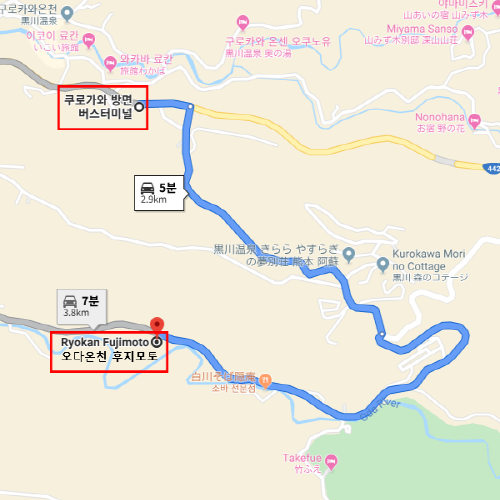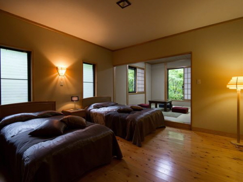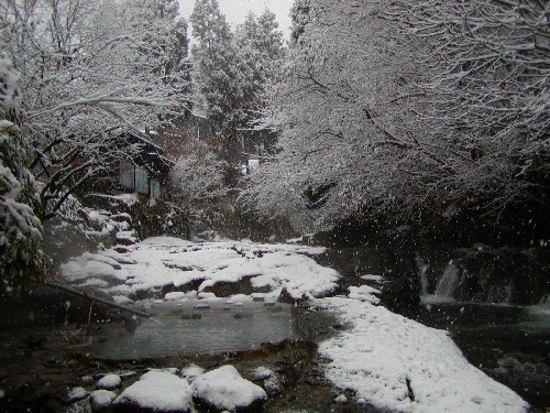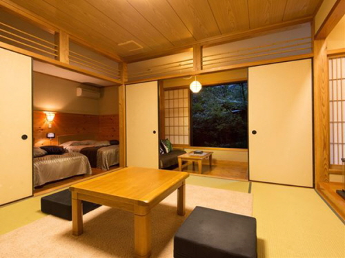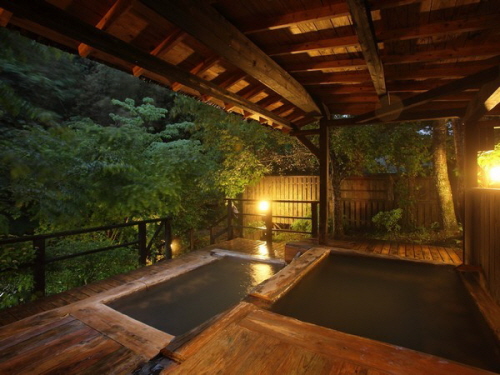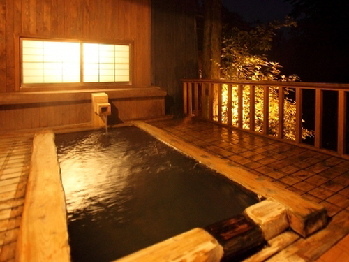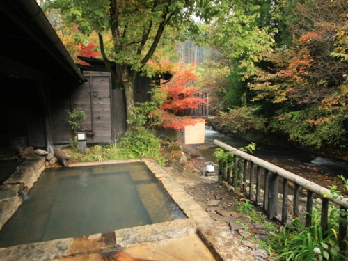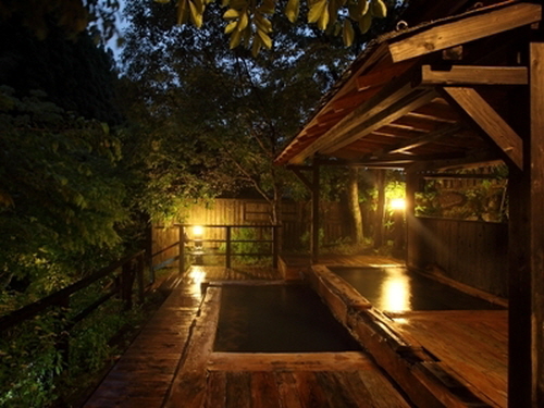 -시냇물이 흐르는 조용한 시골에 위치한 료칸 후지모토는 여러 미디어에서 소개할 정도로 명물인 강 옆에 흐르는 노천온천을 자랑한다. 우거진 나무들 사이에서 흐르는 계곡물 소리를 들으며 즐기는 온천은 더할 나위 없이 훌륭하다. 또한 4개의 전세탕과 밤에도 즐길 수 있는 낭만적인 노천온천은 후지모토의 또 하나의 자부심이다. 객실은 리모델링된 화양실로 1층과 2층에 지어져있다. 선대가 정육점을 운영하여 질 좋은 고기를 사용한다는 후지모토는 야채 또한 그 지역의 토산품을 사용하여 신선하고 깨끗한 식사를 제공한다. |