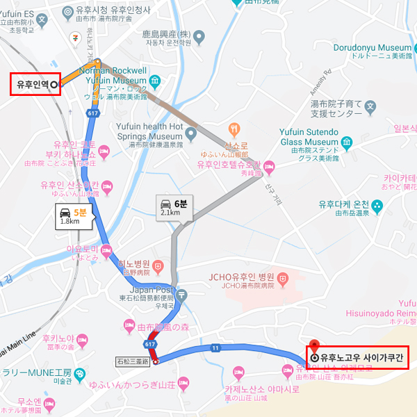 | - 무료 드링크 서비스(담화실에서 이용, 맥주 서버, 커피, 유후인 냉수) - 에스테, 맛사지 - 자전거 렌탈 (총 6대) : 성인용 전동자전거, 1시간 1대 300엔. 당일 프런트에서 접수 TIP ! 유후인치키 서비스: 유후인 역에서 료칸까지 짐만 보내는 유료 배송 서비스 (https://bit.ly/32Es2FD) |