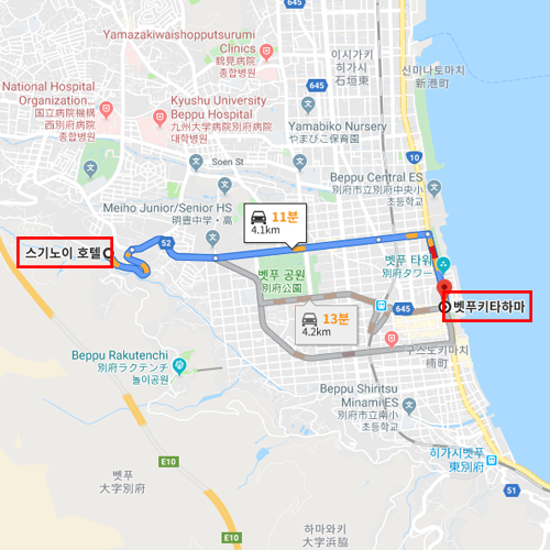 | ※스기노이 호텔 ↔ JR 벳푸역 간 셔틀버스 운행 있음. 픽업 장소: JR 벳푸역 서쪽 출구, 호텔 후지요시 주차장 샌딩 장소: 소라칸·니지칸·중간 현관 앞 ○ 사전 예약 없이 이용 가능합니다. |