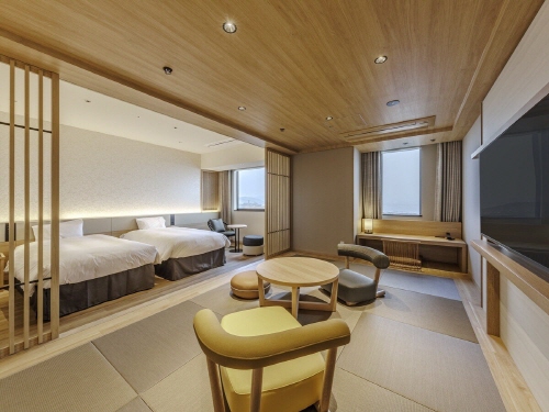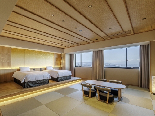 별채형 객실을 포함한 총 791실 규모의 대형 온천 리조트 호텔로, 2025년 1월 새롭게 문을 연 호시칸, 2023년 완공된 소라칸, 그리고 기존 니지칸으로 구성되어 있습니다. 별관을 포함한 객실은 바다 또는 산 전망을 갖추고 있으며, 모던한 비즈니스형부터 고급 스위트, 일본식 룸 등 다양한 타입을 선택할 수 있어, 가족 여행은 물론 비즈니스 목적, 단체 여행 등 다양한 여행객에게 적합합니다 . 호텔 내 온천 시설은 대형 노천욕탕(Aqua-Beat) 및 실내·노천 온천탕이 완비되어 있고, 부대시설로는 볼링장, 노래방, 실내외 수영장, 피트니스, 스파, 키즈 클럽, 게임 코너, 레스토랑·카페·바, 기프트숍 등이 있어, 아이부터 어른까지 즐길거리가 풍성한 리조트형 온천 스테이를 제공합니다 .2025년 5월 31일부터 아쿠아비트(수영장)가 재개장이 예정되어 있으며,별처럼 반짝이는 시간을 콘셉트로 한 호시칸의 라운지와 레스토랑, 고급스러운 인테리어 역시 인상적입니다. 또한, JR 벳푸역 무료 셔틀(10분 거리), 객실 내 무료 Wi‑Fi, 주차장 무료 제공 등의 편의 서비스가 있어 현대 여행자에게 꼭 맞는 간편함도 갖추고 있습니다. |